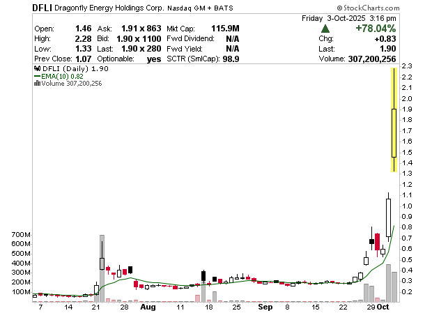 I encourages you to learn from this and watch across the coming days to see what happens to the price of DFLI stock.