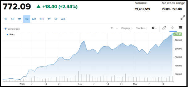 It’s now at 772.09 and climbing: