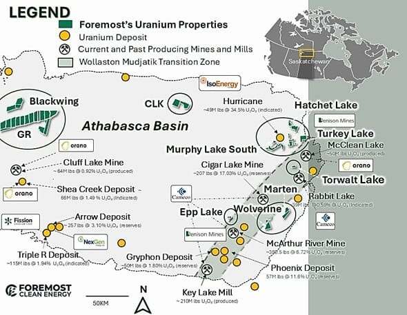 Foremost’s properties, surrounded by uranium mines and mills